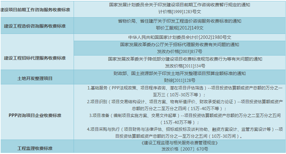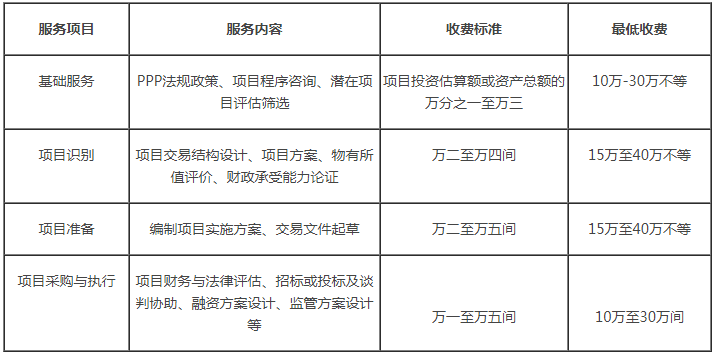 PPP咨詢項目企業(yè)收費標(biāo)準(zhǔn)