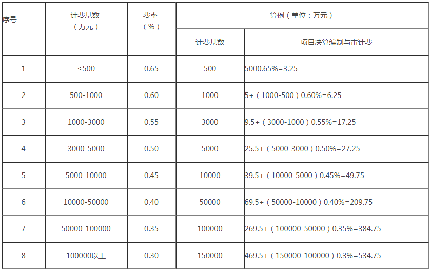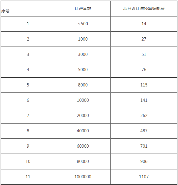 項目設(shè)計與預(yù)算編制費計費標(biāo)準(zhǔn)
