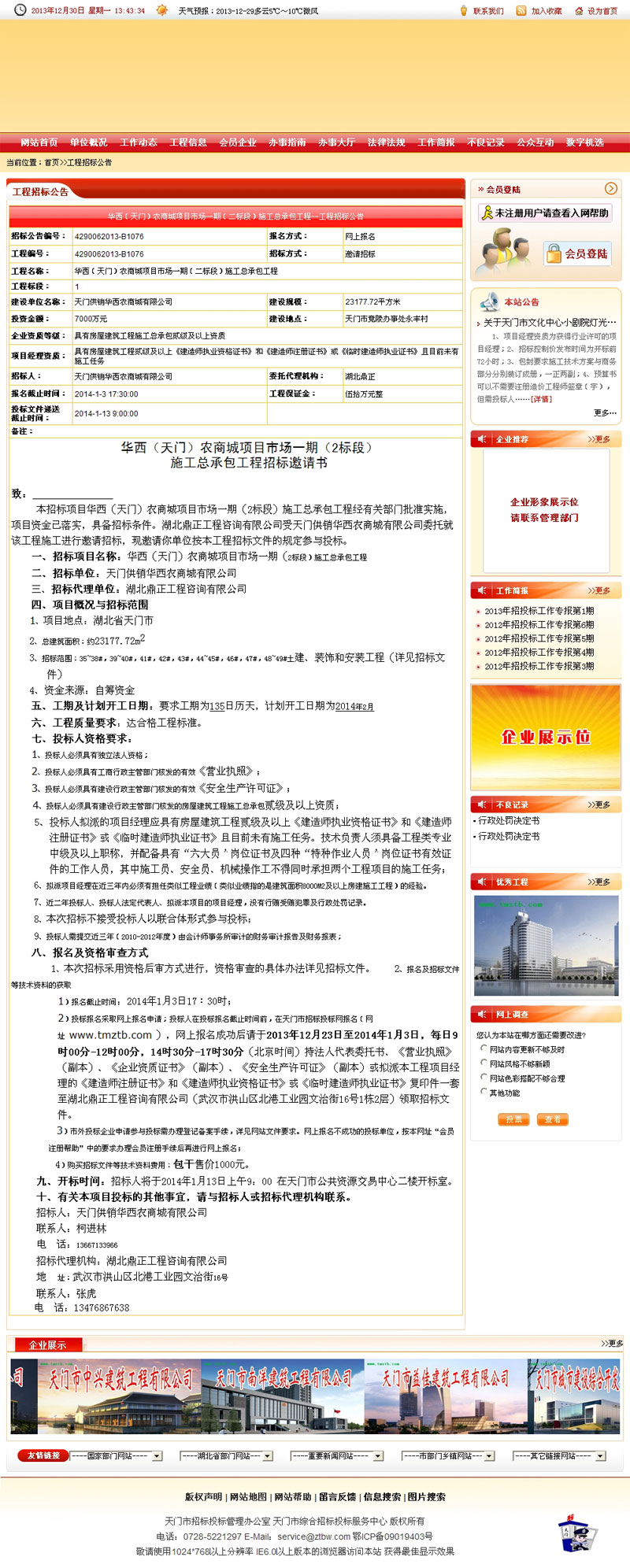 華西(天門)農商場項目市場一期(二標段)施工總承包工程