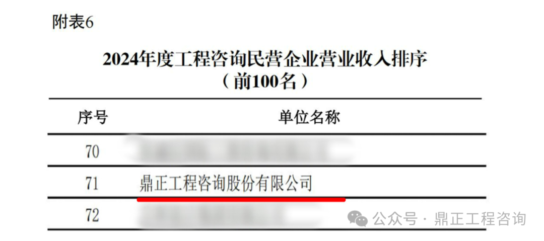 為進一步推動工程咨詢行業品牌建設,規范行業行為、提高自律管理,8月21日,中國工程咨詢協會在官網發布了關于2024年度工程咨詢單位排序的公告。鼎正憑借穩健的經營實力和綜合表現,同時榮登兩項百強榜單,位列“2024工程咨詢單位營業收入中型企業100強”第57位,以及“2024工程咨詢單位民營企業營業收入100強”第71位!