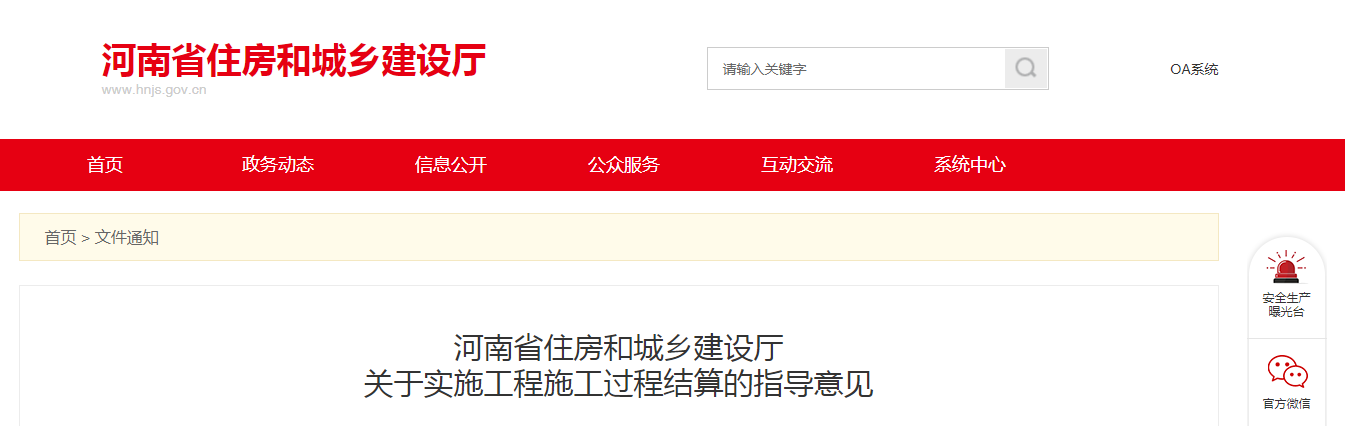 2020年7月23日,河南省住建廳下發《關于實施工程施工過程結算的指導意見》。