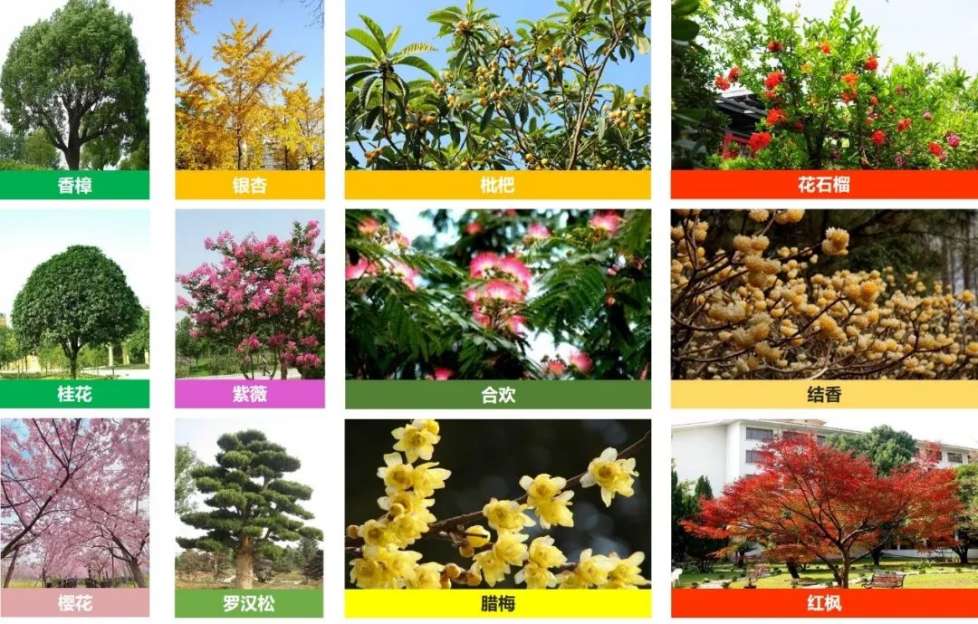 1)選擇適宜在武漢市生長、并具有獨特觀賞性的樹種, 形成園區主要景觀點。如:銀杏、合歡、羅漢松等。