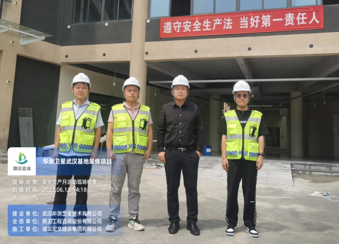 6月13日,鼎正咨詢副總經(jīng)理張虎、項目管理部經(jīng)理張力來到華測武漢基地項目現(xiàn)場,開展2022年“安全生產(chǎn)月”活動巡查,貫徹落實“抓安全管理就要抓隱患排查”思想,對華測項目在施工期間所開展的項目安全進行檢查。張總表示:“針對現(xiàn)場發(fā)現(xiàn)的安全隱患,除了通過發(fā)送安全檢查報告、監(jiān)理通知單方式形成書面記錄以外,還要安排專人督促整改落實情況,做到安全隱患零容忍。”他強調杜絕僥幸心理,安全生產(chǎn)必須警鐘長鳴,要遵循安全生產(chǎn)科學規(guī)律,及時整治潛在隱患,筑牢安全生產(chǎn)防線。