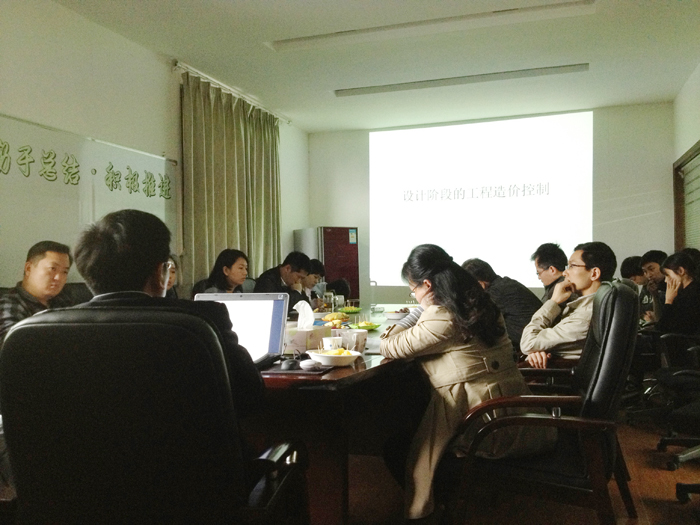2014年4月19日,設計階段成本優化的講座與交流會在公司會議室召開,我們有幸邀請到武漢理工大學朱立冬教授主講了關于房屋建筑行業在設計階段的造價控制,同時也邀請到多位業界前輩就該課題進行深入探討,藉此提升和增強我們的造價工程師在設計成本優化方面的認識。
