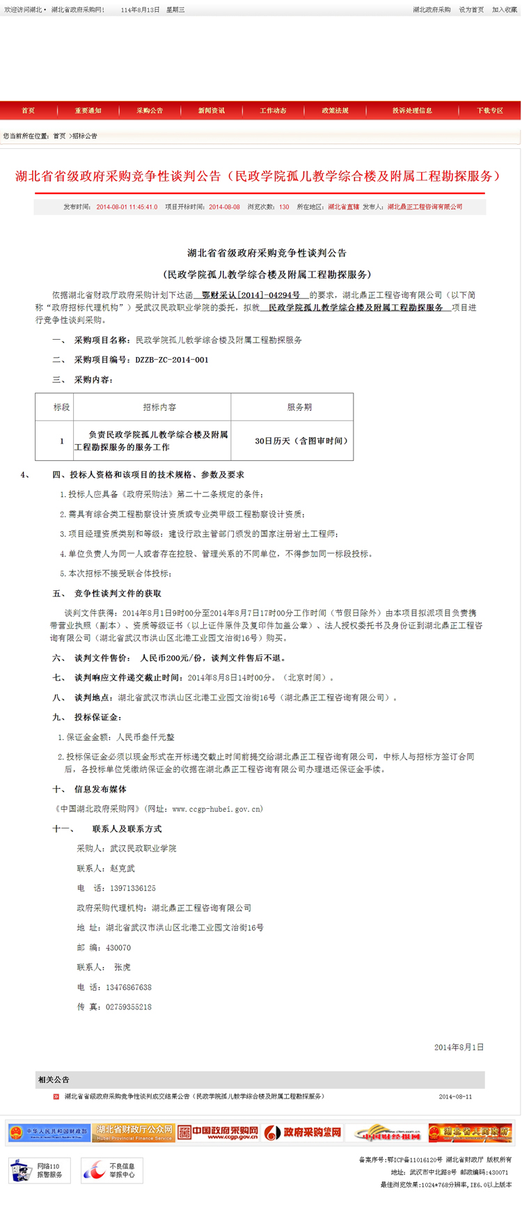武漢民政職業學院孤兒教學綜合樓項目設計招標