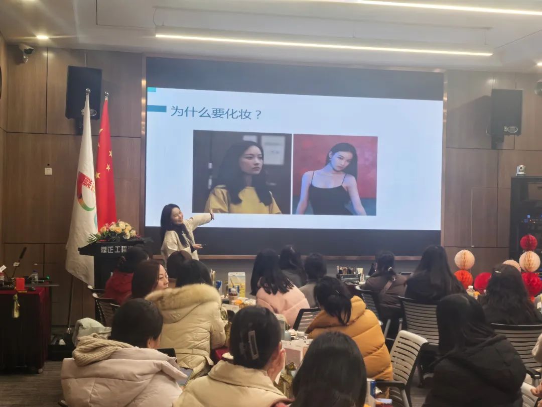 3月6日下午,鼎正為每一位女神精心準(zhǔn)備了一場(chǎng)專屬儀式——“從容出發(fā),妝點(diǎn)自己”主題美妝課堂。在專業(yè)美妝老師的指導(dǎo)下,她們暫時(shí)放下手中的工作,拿起彩妝畫筆,開始勾勒屬于自己的高光時(shí)刻。她們?cè)诠こ虉D紙與化妝刷之間切換,尋找更好的自己,用美麗綻放詮釋事業(yè)與美的雙重進(jìn)階。