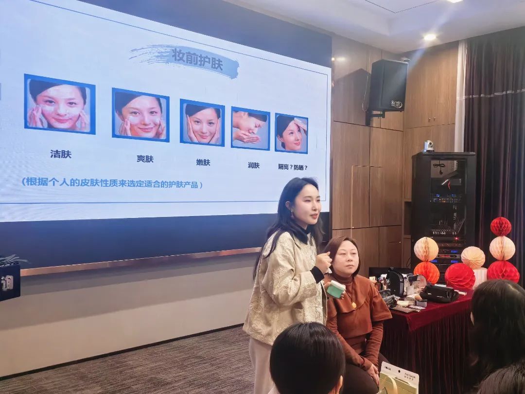 課堂上,專業(yè)美妝老師以細(xì)膩的筆觸和專業(yè)的視角,系統(tǒng)地解析了職場(chǎng)與生活雙場(chǎng)景下的妝容公式。她強(qiáng)調(diào),底妝是整體妝容的基石,不同膚色適合的底妝色號(hào)各不相同,精準(zhǔn)選擇能讓妝容更加自然和諧。從職場(chǎng)著裝到妝容設(shè)計(jì),從理論剖析到實(shí)操技巧,從眉形勾勒到腮紅暈染,通過(guò)現(xiàn)場(chǎng)演示,將每一個(gè)步驟都講解得細(xì)致入微。她手把手地指導(dǎo),幫助在場(chǎng)的每一位女神擺脫“手殘”的困擾,傳授實(shí)用的化妝技巧,耐心解答每一個(gè)疑問(wèn)。