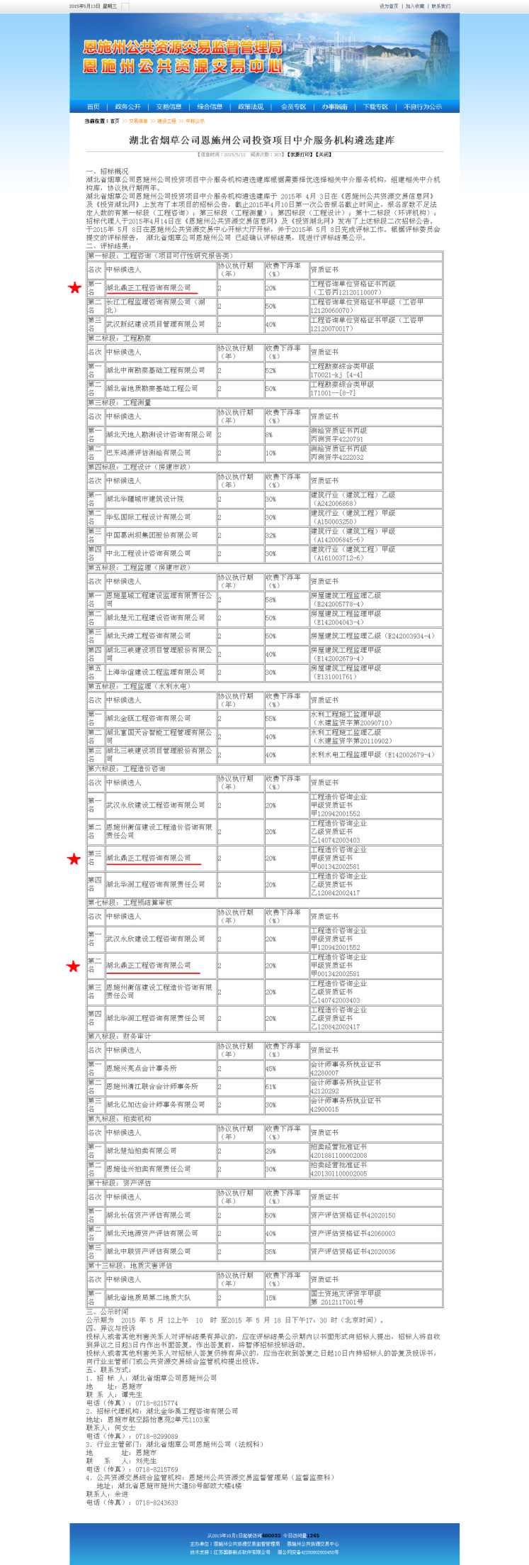 【經營成果】我司入圍湖北咸寧經濟開發區管理委員會2015年度16類相關中介服務機構的可行性研究單位