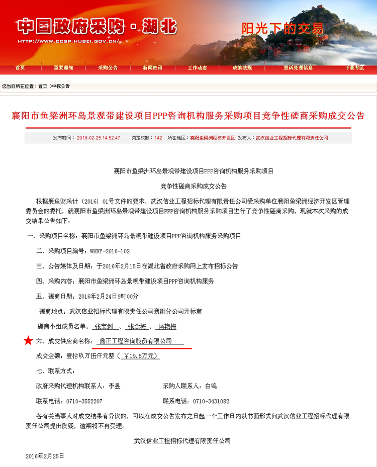 【經(jīng)營(yíng)成果】我司中標(biāo)襄陽(yáng)市魚梁洲環(huán)島景觀帶建設(shè)項(xiàng)目PPP咨詢機(jī)構(gòu)服務(wù)采購(gòu)項(xiàng)目