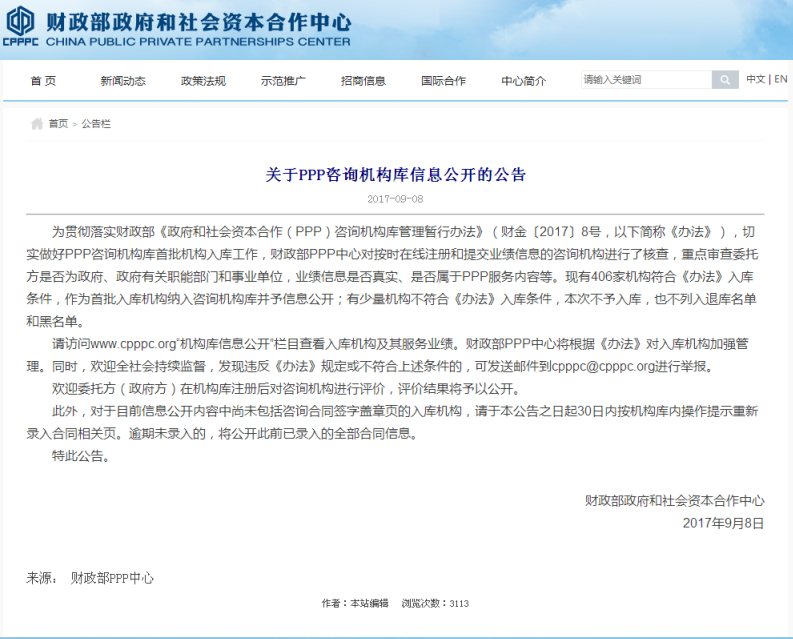 此次成功入選財政部首批PPP咨詢機構庫,是對鼎正公司專業實力的認可,下一步,我司將繼續為各級政府主管部門和社會資本方提供優質PPP咨詢服務。