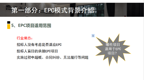 下午,采購與招標(biāo)代理事業(yè)部的潘勝強(qiáng)帶來了《EPC項(xiàng)目招標(biāo)實(shí)務(wù)》的主題培訓(xùn)。潘勝強(qiáng)首先介紹了EPC模式的背景,包含工程總承包的主要模式,EPC發(fā)展?fàn)顩r,EPC項(xiàng)目適用范圍,招標(biāo)流程等多方面內(nèi)容。隨后對EPC項(xiàng)目招標(biāo)要點(diǎn)進(jìn)行了解析,結(jié)合相關(guān)政策文件對工程總承包發(fā)包階段和條件、資格條件的設(shè)置、EPC項(xiàng)目前期單位是否可以參與后期投標(biāo)、合同計(jì)價(jià)方式、分包原則進(jìn)行了詳細(xì)的解讀。