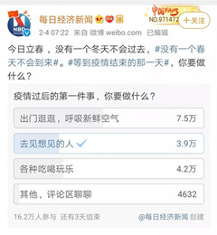 今天,2020年2月14日,一個特殊的情人節!想從一個近期的網絡投票說起:“疫情過后的第一件事,你要做什么?”