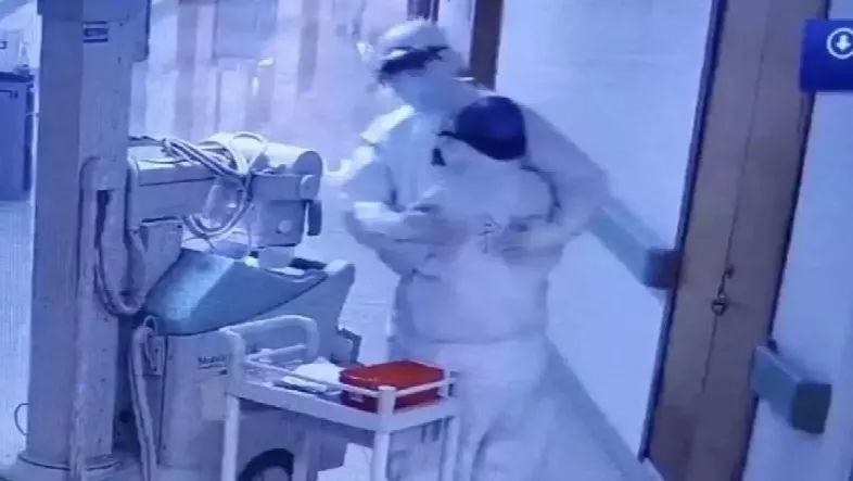 一次性的防護服下,根本認不出防護服里誰是誰。浙江紹興市人民醫院一對多日未見的醫生夫妻,在隔離病房前相遇,都沒認出對方。